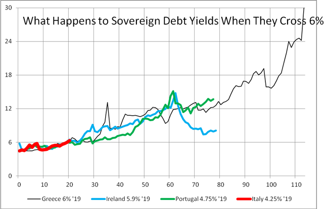 Greece broke 6% and never looked back. It had a few rallies, but never really got close to 6% again.